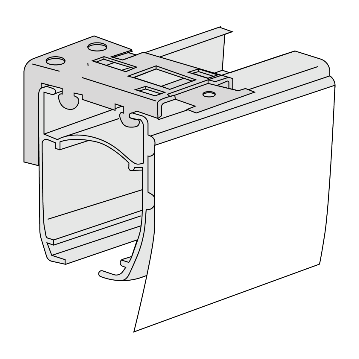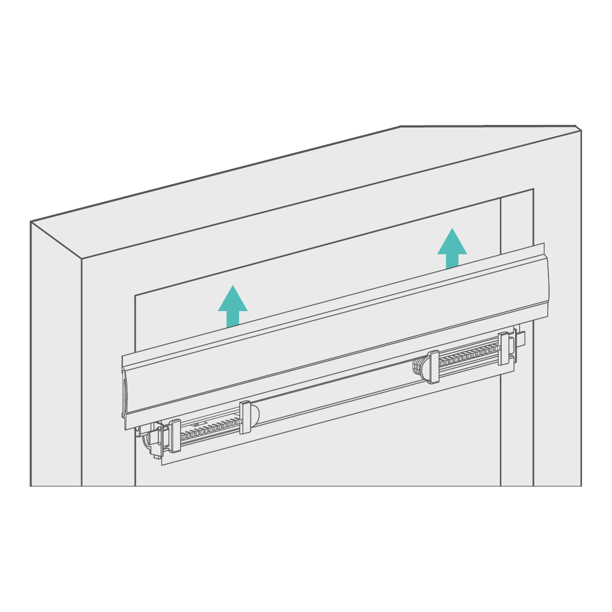 When the brackets have been fitted to the window area, holding the blind up, rest the front ridge of the rail onto the front lip of the bracket.