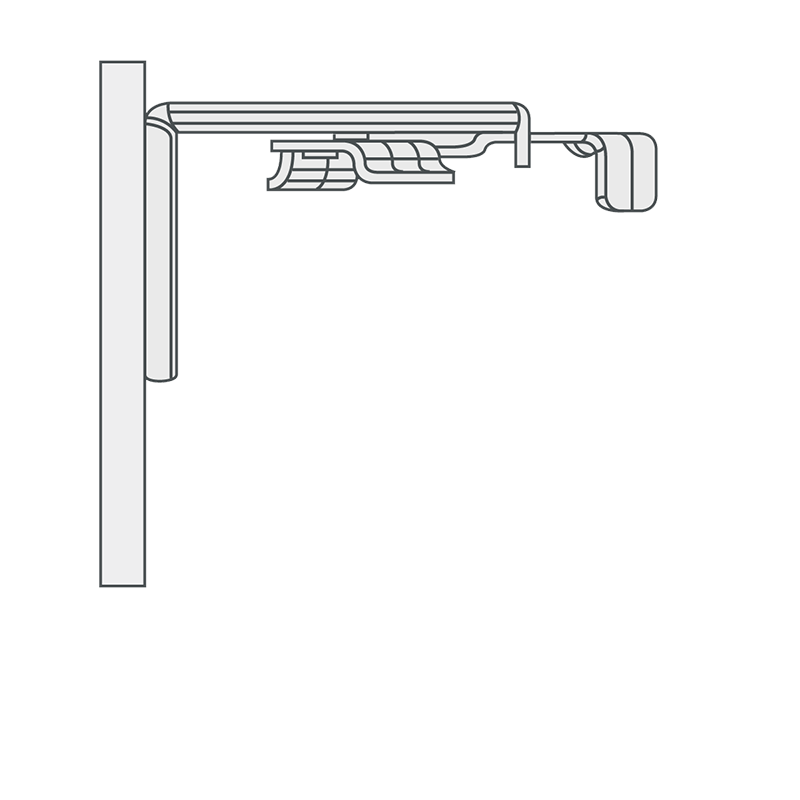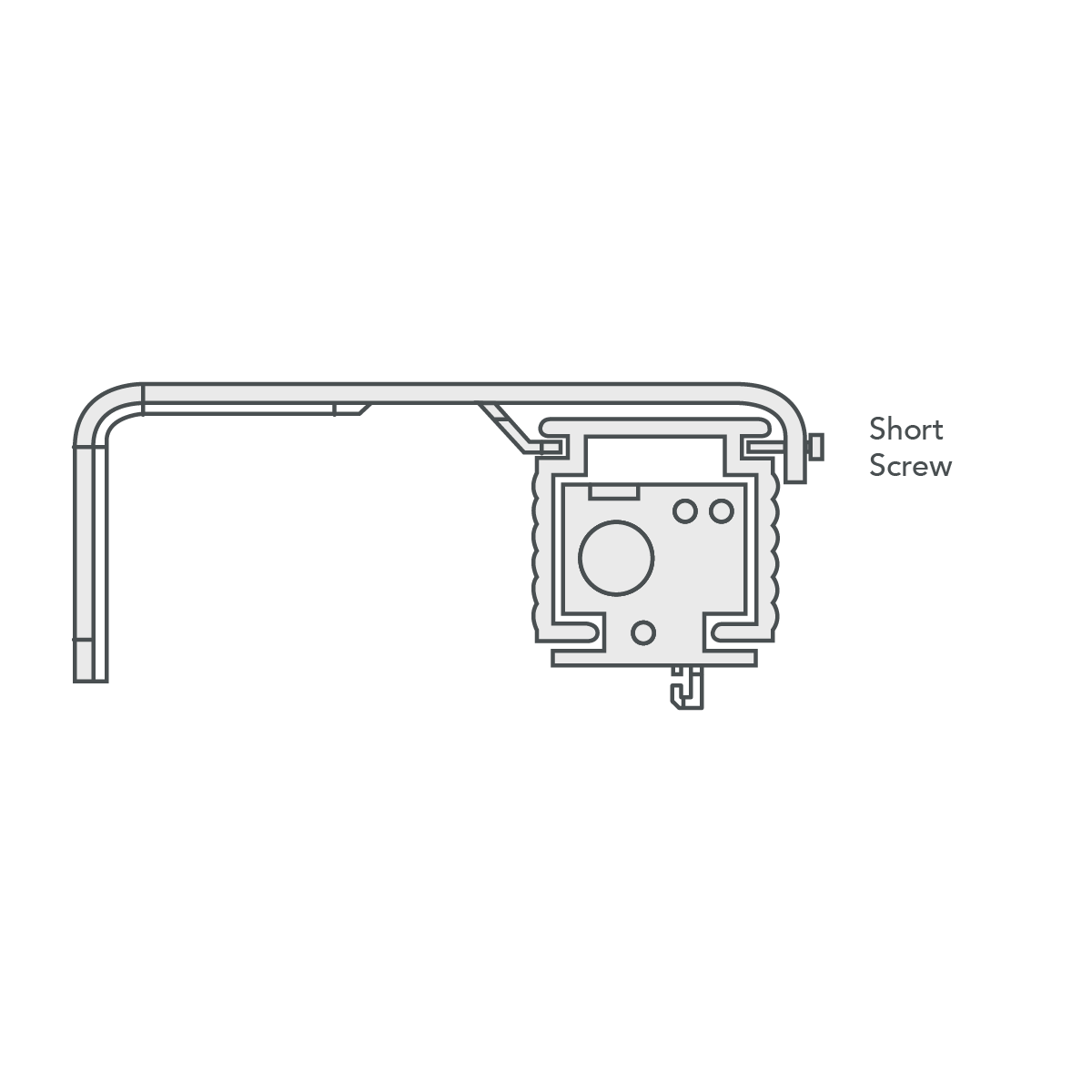 Hook the back of the headrail into the bracket and rotate the headrail into position. Secure headrail by tightening the short screw in the front of the bracket.