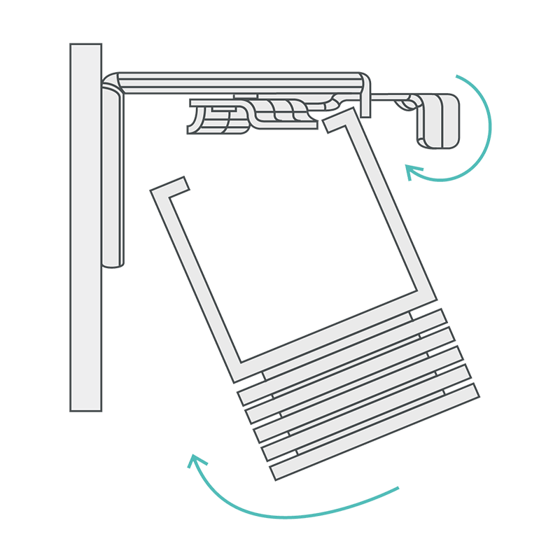Now the brackets are installed, take your blind and offer it up to the bracket, keeping the metal swivel arms open and poinitng towards you.