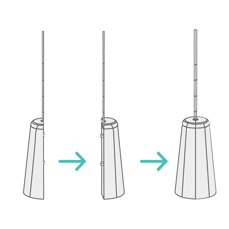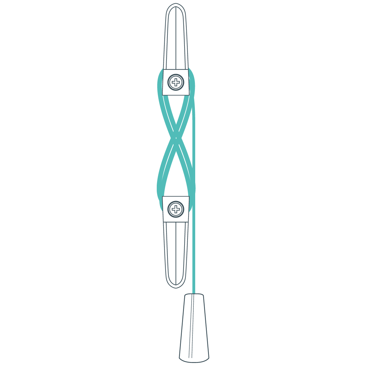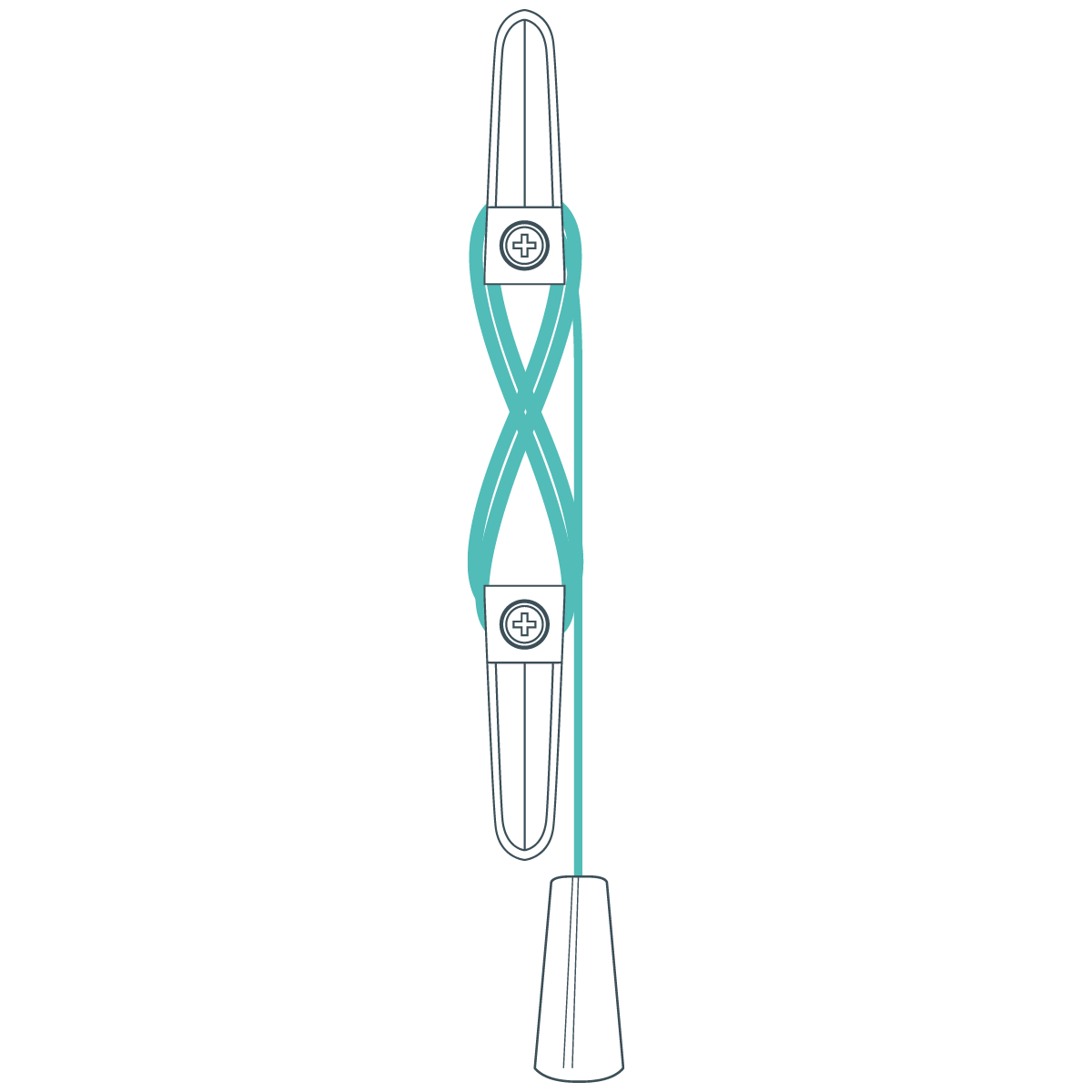 Wrap the cords around the cord cleats in a figure of 8. When the cords are fully accumulated ensure they are secure, so when the cord is pulled no excess is released.