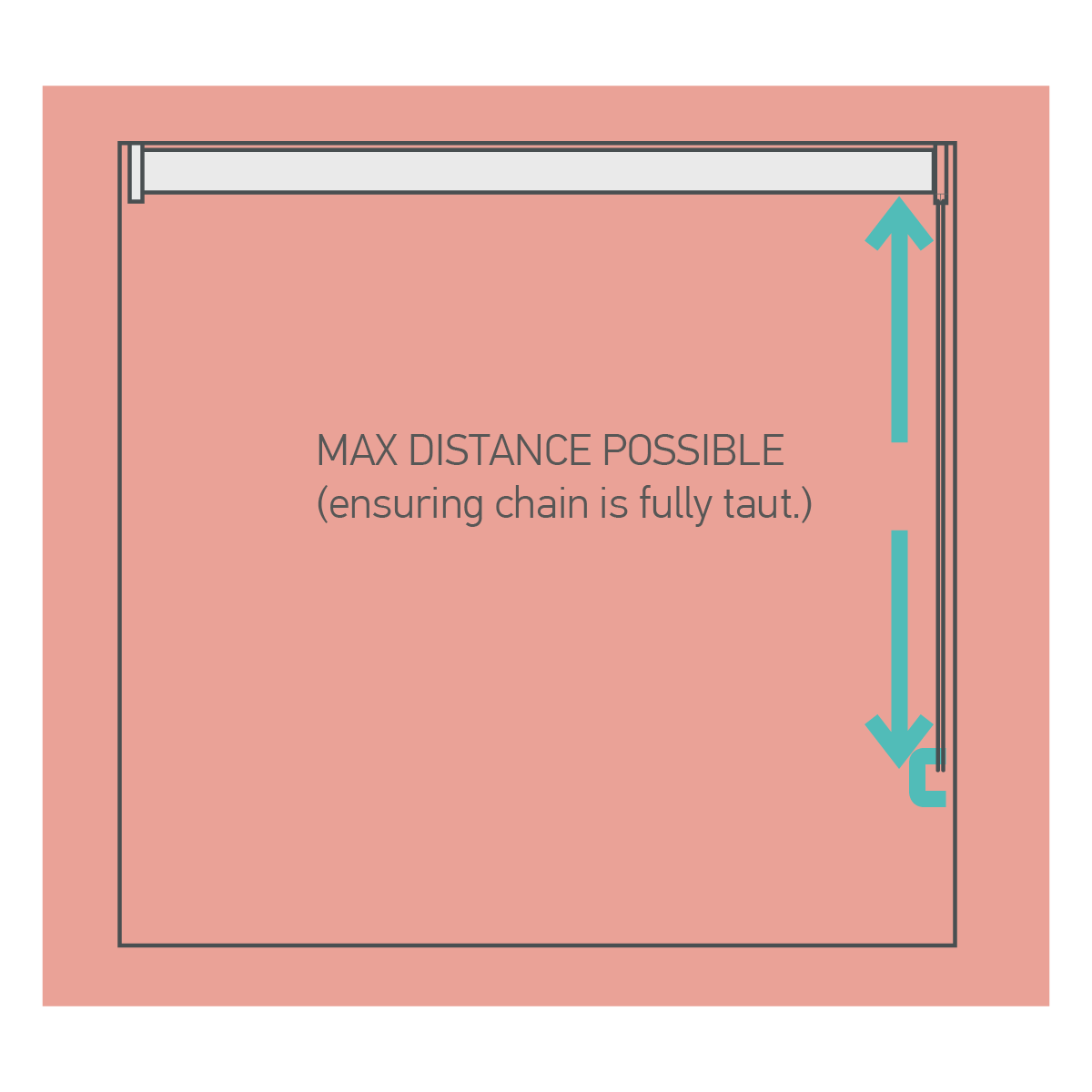 The safety device must be installed at the maximum distance possible from the control mechanism to prevent looped chain becoming slack. The chain should be taut. Place the safety device on the wall and mark the positioning of the 2 screw holes, then drill two suitable holes.