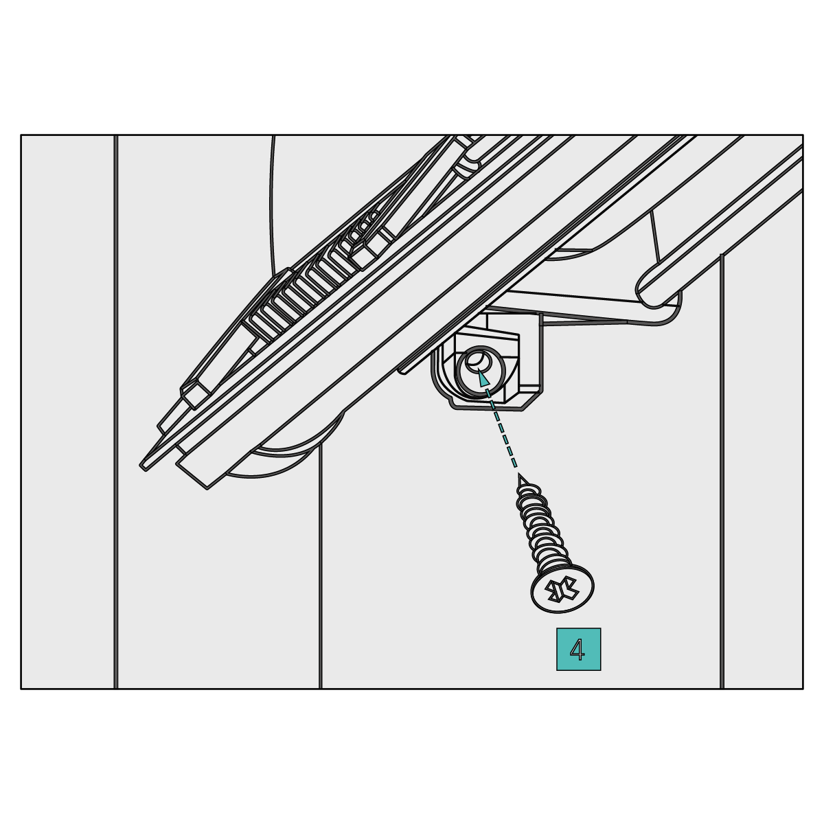 Note: You will need to provide your own screws, as the required type depends on the surface you're fixing to. Use 4mm diameter screws that are appropriate for the material you’re installing into.