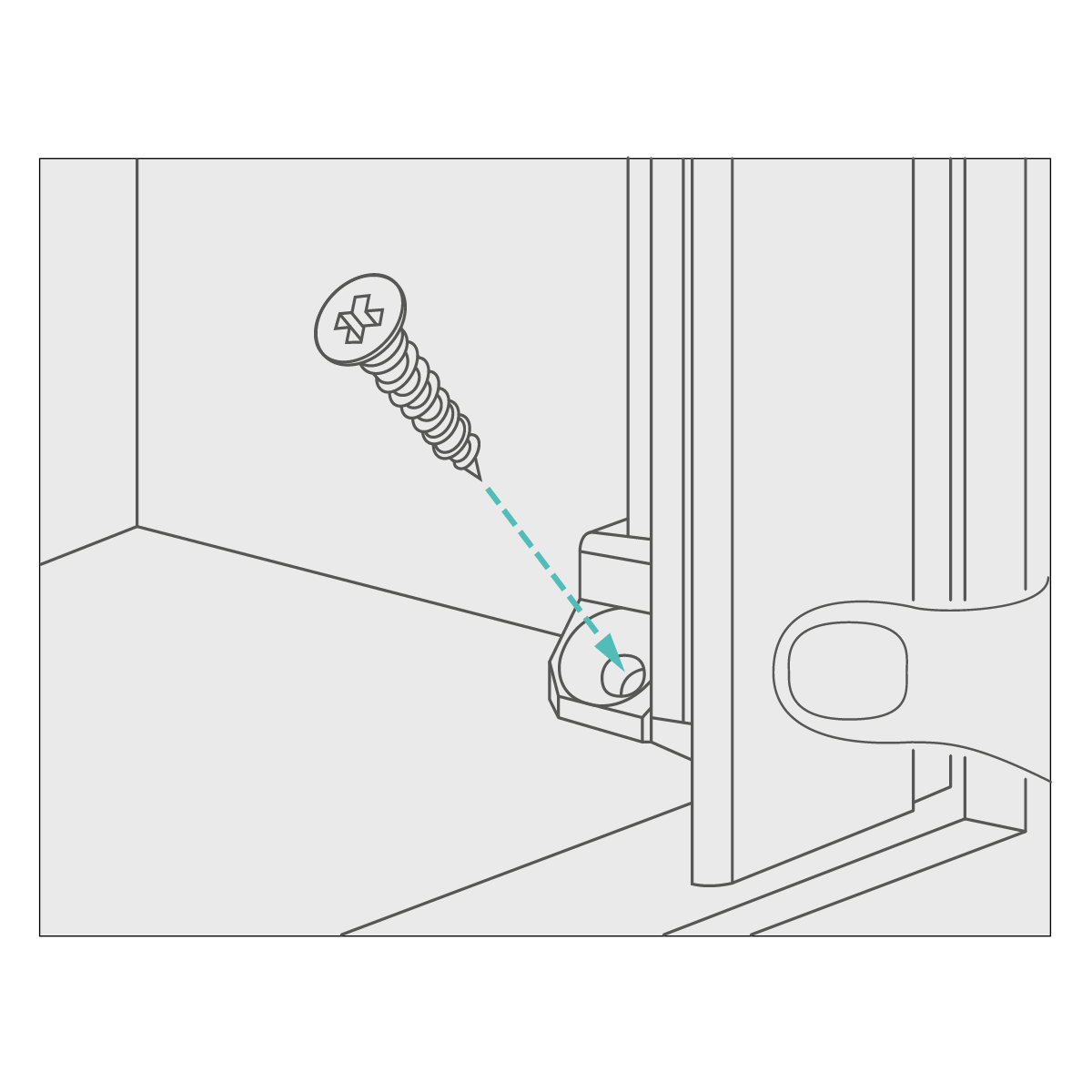 Use the screws provided to attach the safety cleat to the wall in the pre-drilled holes.