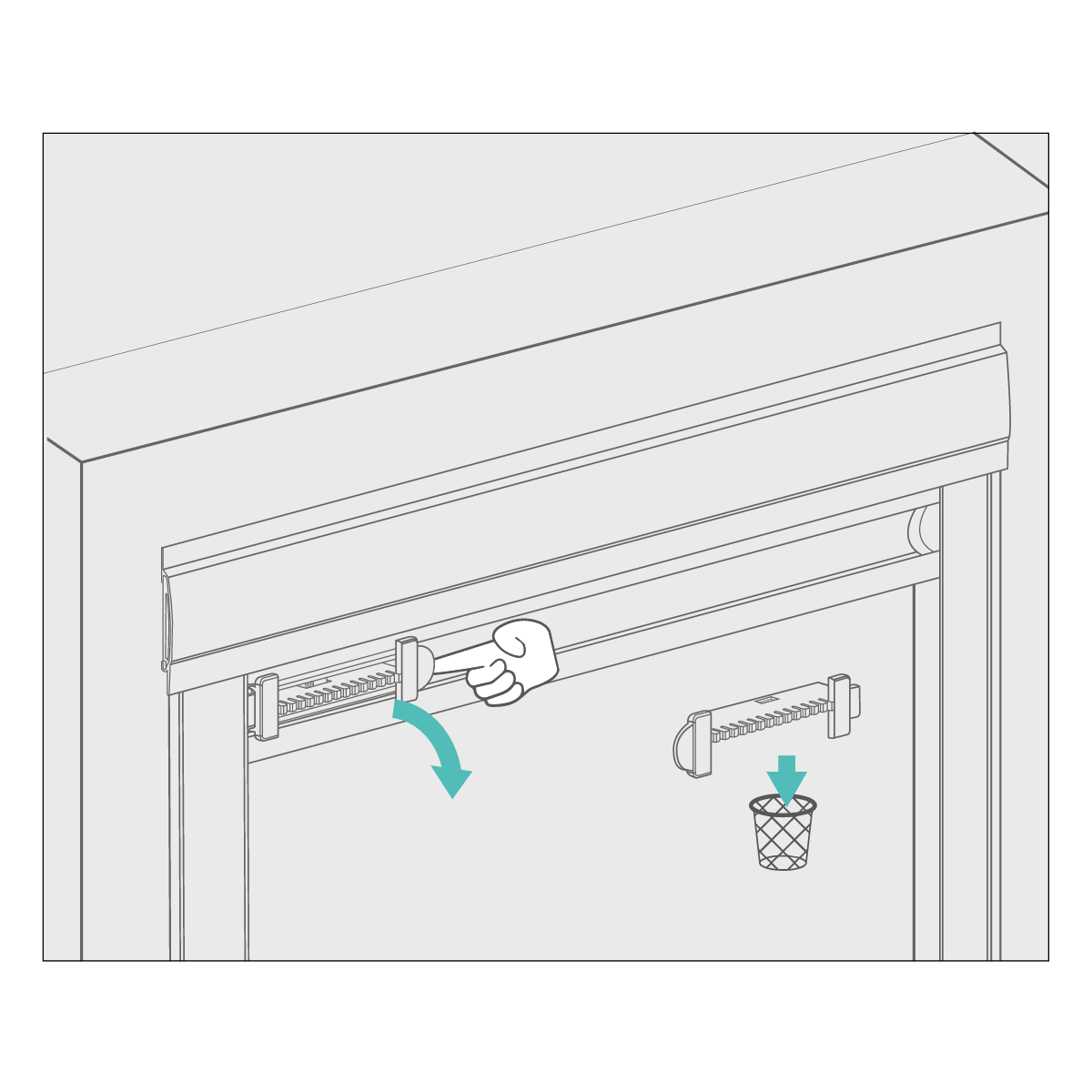 Hold down clips are optional. Using two small screws, screw the hold down clip to the window facing or the wall/window recess. Pop the bracket pin ends into the hole at bottom rail end.
